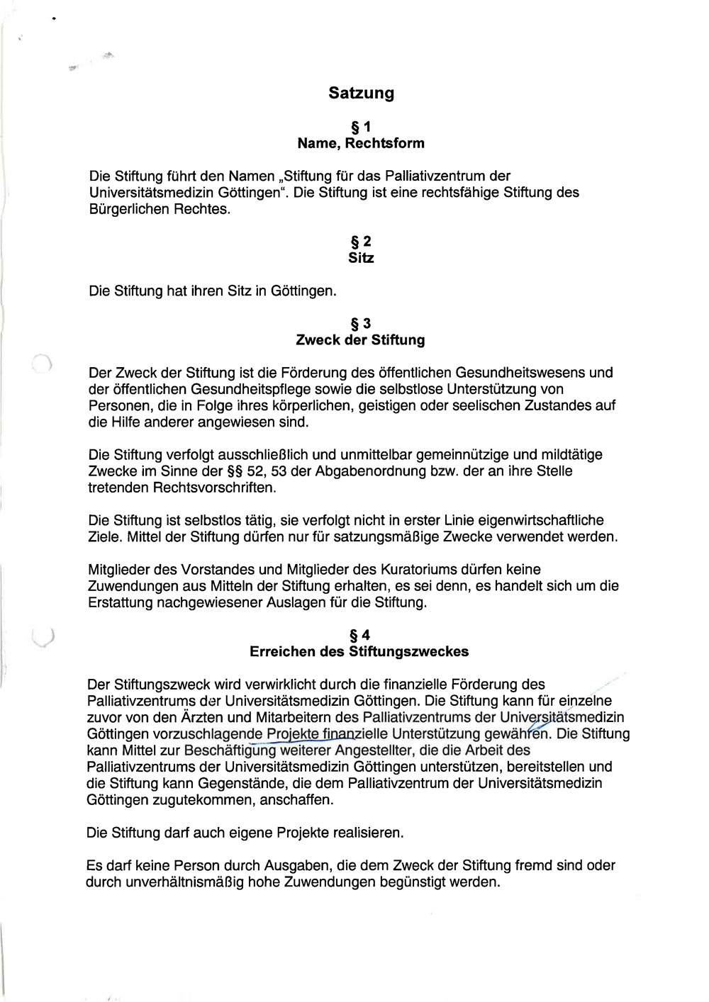 Die Satzung der Palliativstiftung Göttingen